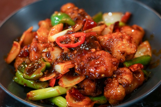 Gluten Free. Spice Level Mild. Crispy chicken in a savory Mulan sauce.