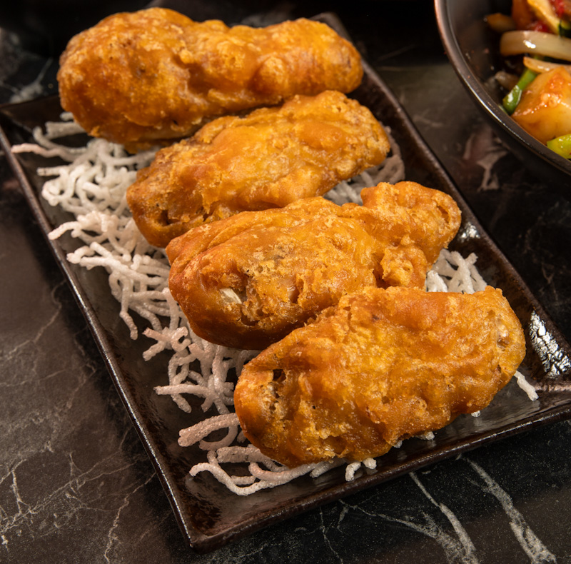 Golden, crispy chicken wings, seasoned to perfection. 4pcs. GF. Contain: Soy, Crustacea.
