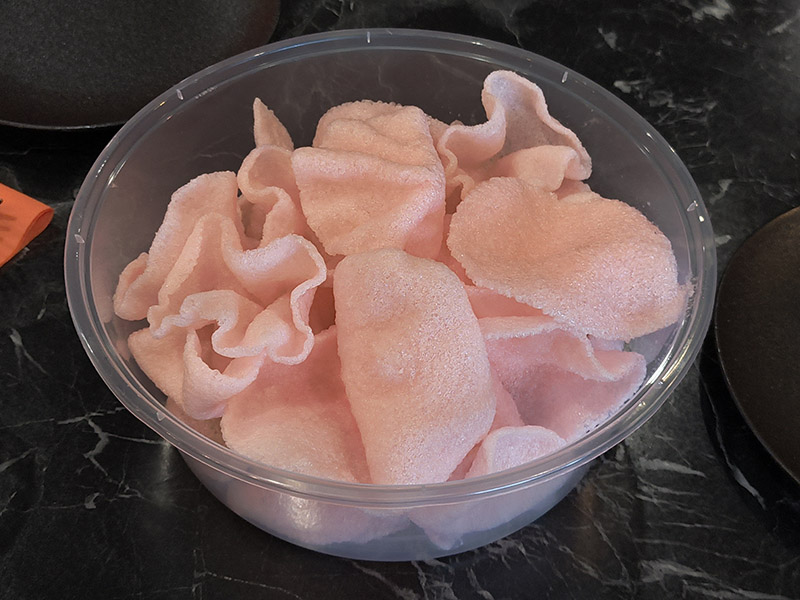 Mild Pepper Spice. Crispy pork seasoned with aromatic salt, pepper, and a hint of chili. GF.