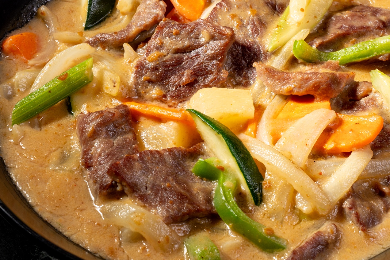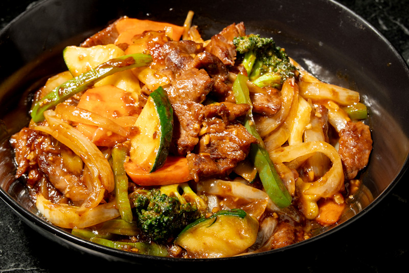 Sliced beef stir-fried with onions and scallions in a sweet and savory Mongolian sauce. GF. Contain: Soy “May Contain traces of: Milk, Peanut, Sesame, Tree Nuts (not speciflied).”