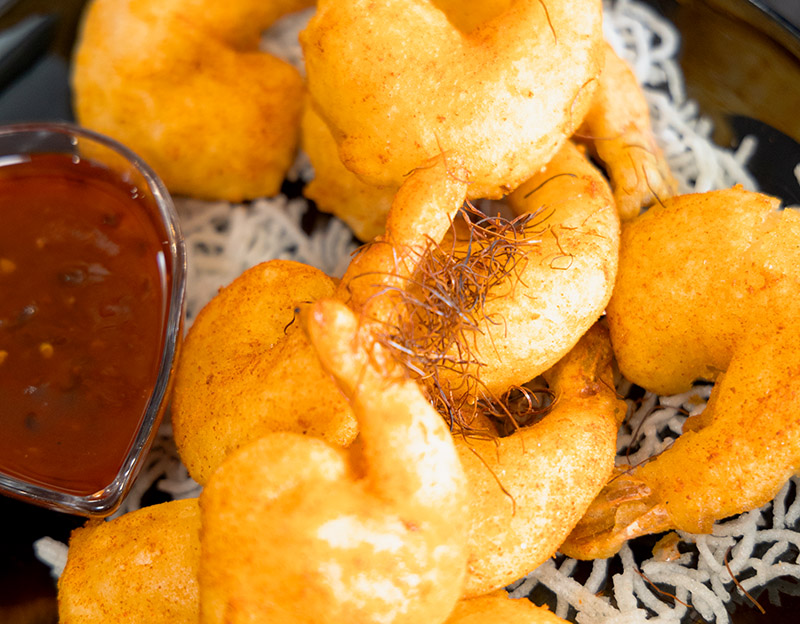 Spice Level Mild. Crispy prawns in a savory Mulan sauce. GF. Contain: Crustacea.