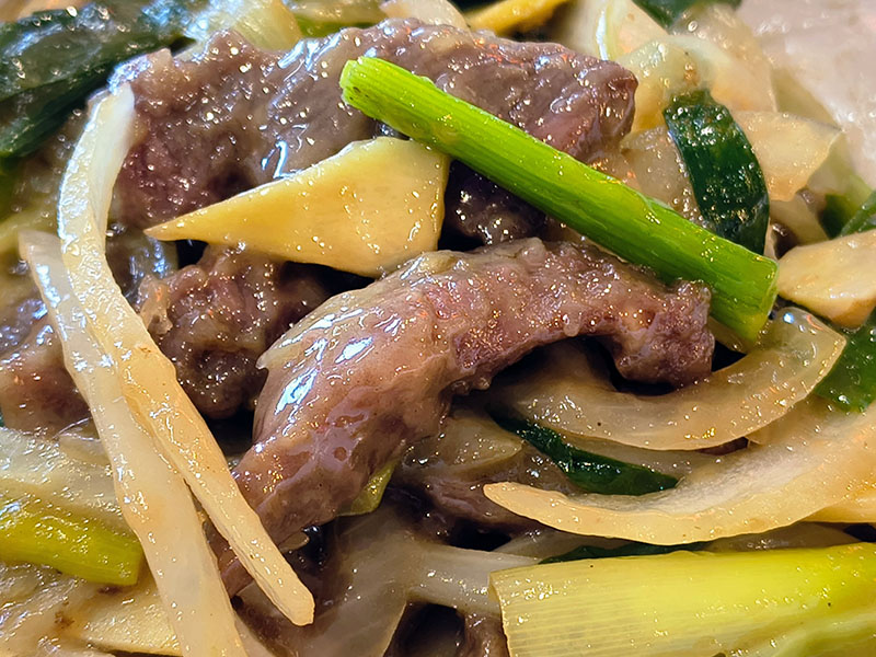 Sliced lamb backstrap stir-fried with onions and scallions in a sweet and savory Mongolian sauce. GF. Contain: Soy, Egg. “May Contain traces of: Milk, Peanut, Sesame, Tree Nuts (not speciflied).”